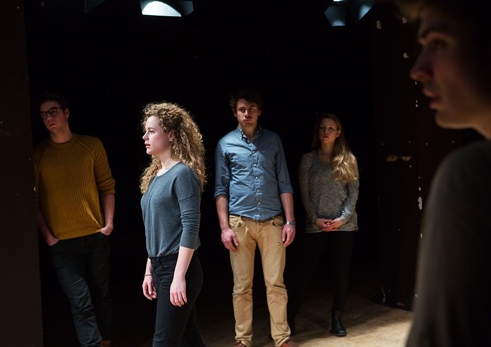 Stockmanns Text ist traurig, ehrlich, bitter, genau beobachtend, aber nicht humor- und auch nicht hoffnungslos. Die neun Studenten eignen ihn sich an – mit bedächtig gesetzten Worten und Schritten. So dass ein Rhythmus entsteht, ein Sound, und eine Dichtheit, die erstaunlich ist, weil so wenig passiert. Eine Stimme setzt ein, eine andere kommt dazu, eine dritte wird leiser, ein Chor wiederholt die Worte – Flora, Sina, Kathrin, Klara, Maximlian, Dominik, Jonas, Timo, Heiner – alle neun sind hier ein Ganzes und doch ist jeder ganz bei sich. Und das Zwischen-den-Zeilen, die von Leid, Wut, Angst, Verwirrung und Gefühlschaos erzählen, stellt etwas her zwischen den Spielern und den Zuschauern. Etwas Schönes, Berührendes.