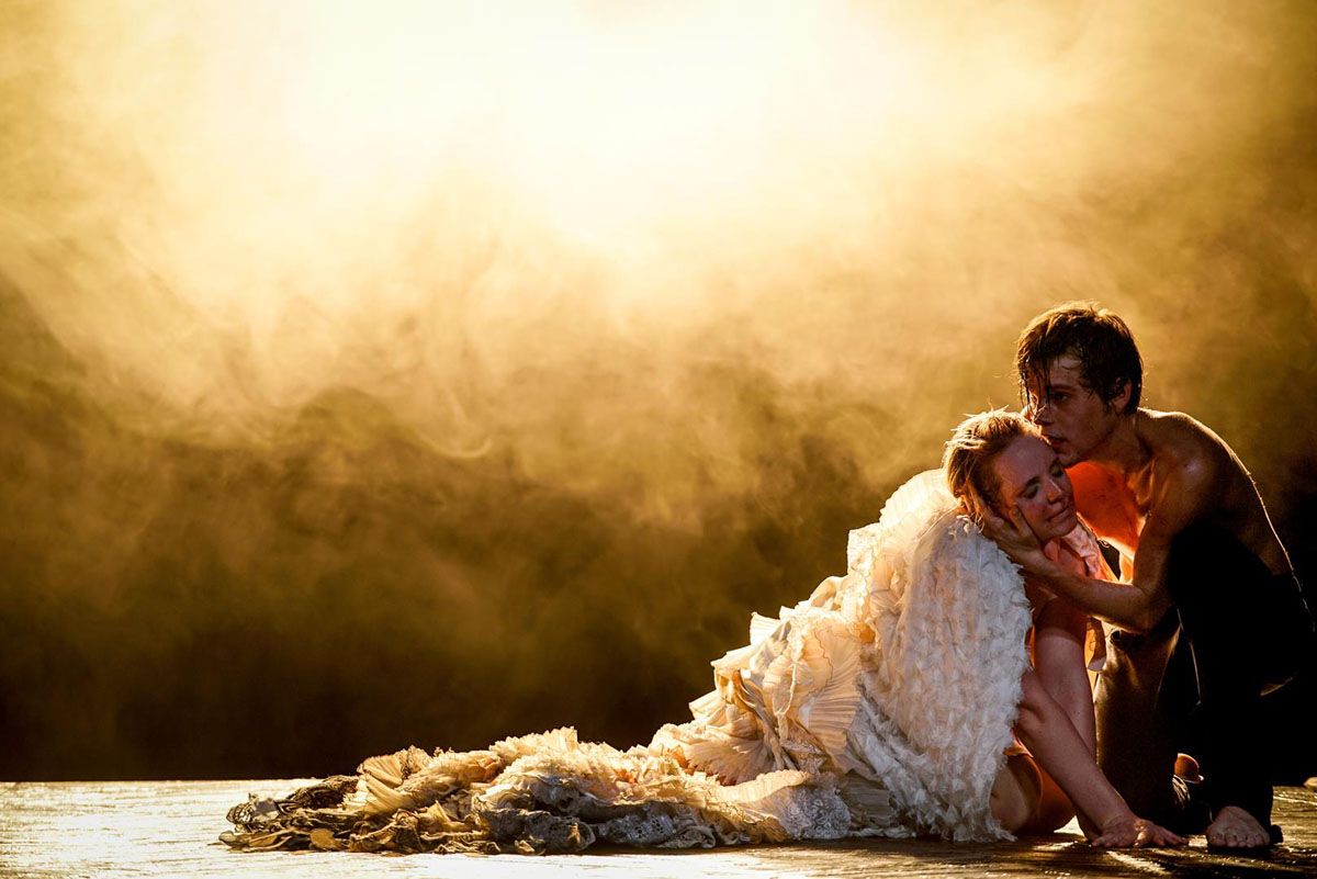 Die Inszenierung soll, so liest man, keinen genau festgelegten Ablauf haben, so daß jede Vorstellung ein wenig anders ablaufen wird. Man kennt das von Hartmanns Leipziger Arbeiten – z.B. „Eines langen Tages Reise in die Nacht“, „Kirschgarten“ oder „Fanny und Alexander“. In jedem Fall wird es für Katrin Wichmann und Benjamin Lillie jeweils ein anstrengender Abend werden, mit vollem körperlichen Einsatz. Großes Lob für die schauspielerische Leistung bei der Premiere, großes Lob aber auch für Sebastian Hartmann und sein Team (Kostüme: Adriana Braga Peretzki, Video und Licht: Voxi Bärenklau) für eine atmosphärisch dichte, konzeptionell stimmige und sinnlich beeindruckende Inszenierung. Lang anhaltender Beifall.