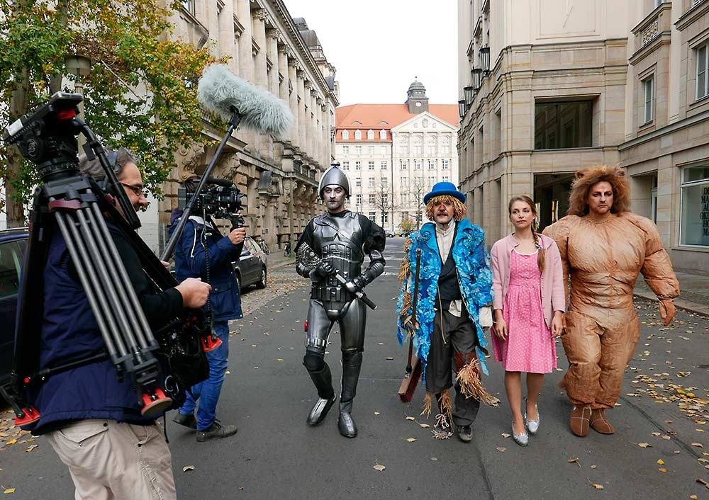 Am Vormittag sei der MDR dagewesen, berichtet Sina, und hat Scheuch, Holzfäller, Löwe und Elli in voller Montur zwar nicht auf den gelben Backsteinweg dafür aber einmal quer durchs Schauspielviertel geschickt. Der Beitrag, der u.a. auch den Regisseur Stephan Beer zu Wort kommen lässt und sich ein wenig mit der Geschichte des Kinderbuches beschäftigt, läuft am Donnerstag, ab 22:05 Uhr im » Kulturmagazin artour.