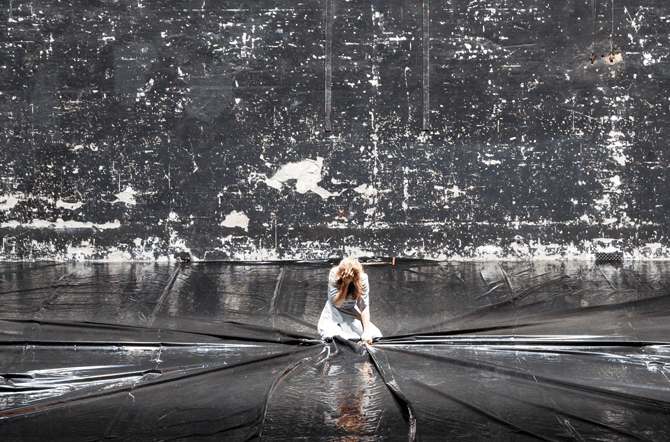 Es beginnt ganz so, als würde wirklich ein Schubert-Liederabend geboten. Der Pianist (Alain Franco) betritt den Raum, dann kommt die Sängerin (Kerstin Avemo) auf die große leere Bühne, positioniert sich in einem Lichtkegel und beginnt zu singen, Schuberts Lieder, die voller Melancholie, Trauer und Schmerz sind.